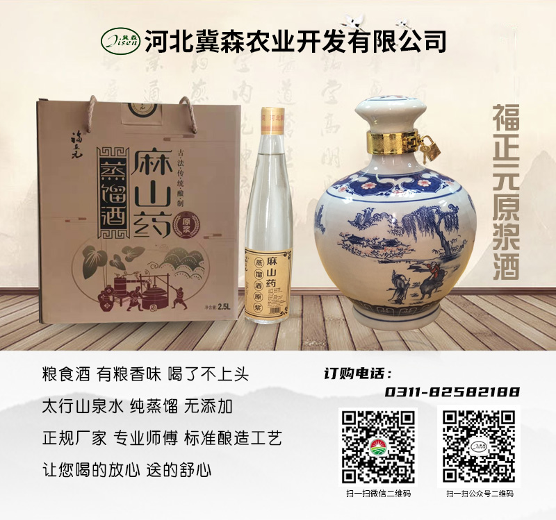 冀森農(nóng)業(yè)深入挖掘古老的固態(tài)發(fā)酵技術(shù),用現(xiàn)代化科技手段研發(fā)出“福正元牌”麻山藥蒸餾酒。采用麻山藥、高粱等三種糧食按一定比例混合、固態(tài)自然發(fā)酵60天,蒸餾出精華液,帶著濃濃的酒曲香味。